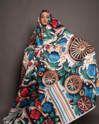 Loly Haute Couture collection, which includes a double eulogy: both a vibrant and solidary immersion in Roma culture, as well as an expression of the feminine solidarity and sisterhood so necessary in art and not exclusively. Really spectacular that Zita designed and printed a new material, which contains traditional motifs and symbols from Roma culture.